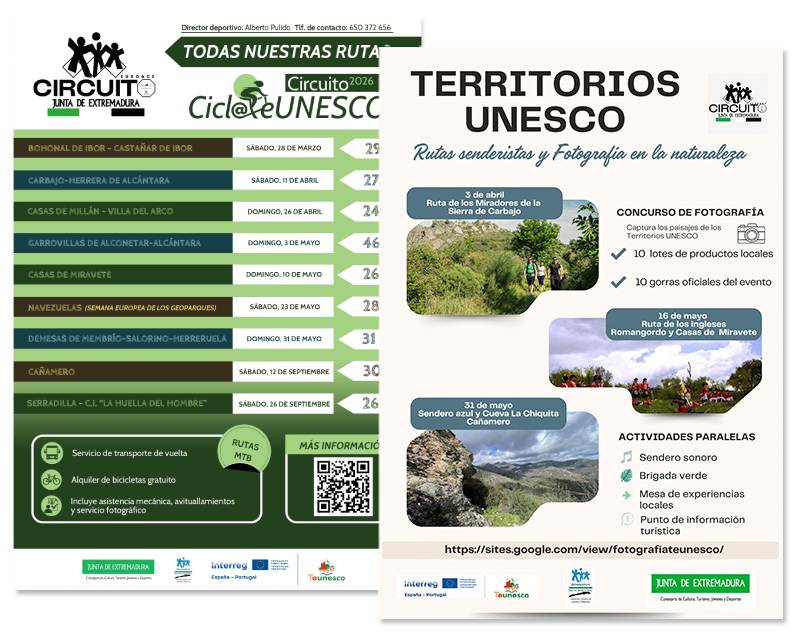 El proyecto TEUNESCO nace para promover y conectar los territorios reconocidos por la UNESCO en la provincia de Cáceres y en Portugal, fortaleciendo la cooperación entre administraciones públicas, entidades locales y espacios naturales protegidos. A través de esta plataforma podrás explorar los paisajes, pueblos, tradiciones, experiencias turísticas y recursos que conforman este territorio único. Descubre rutas de senderismo, patrimonio cultural, gastronomía local y actividades sostenibles que te acercarán a la esencia de estos espacios extraordinarios.